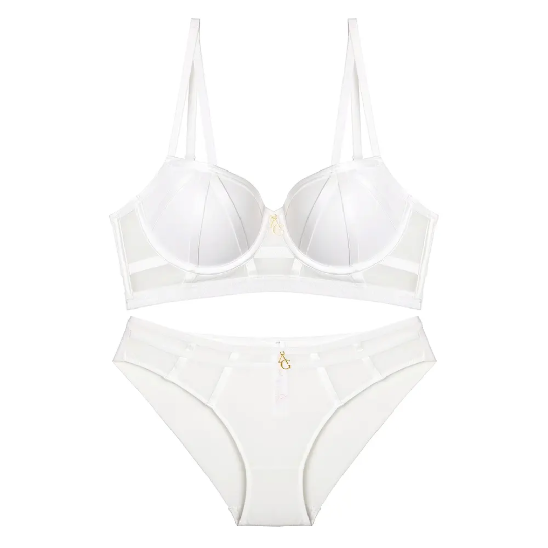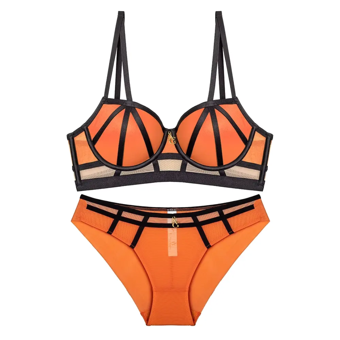 Gold-tone charm detail at the center of both bra and panty