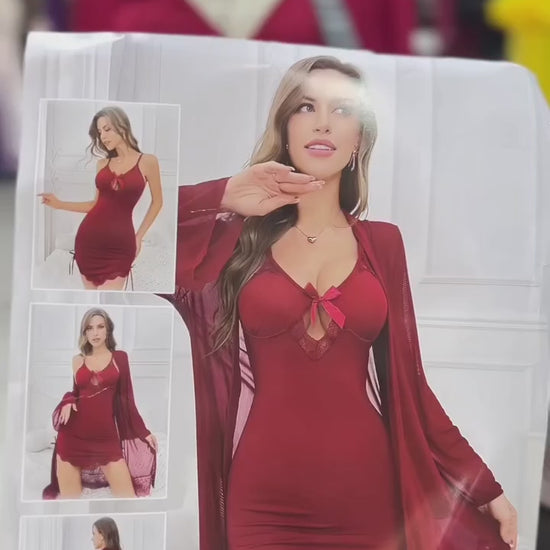 Two-Piece Ensemble: Includes a seductive chemise/babydoll nightgown and a coordinating sheer mesh long-sleeve robe.
