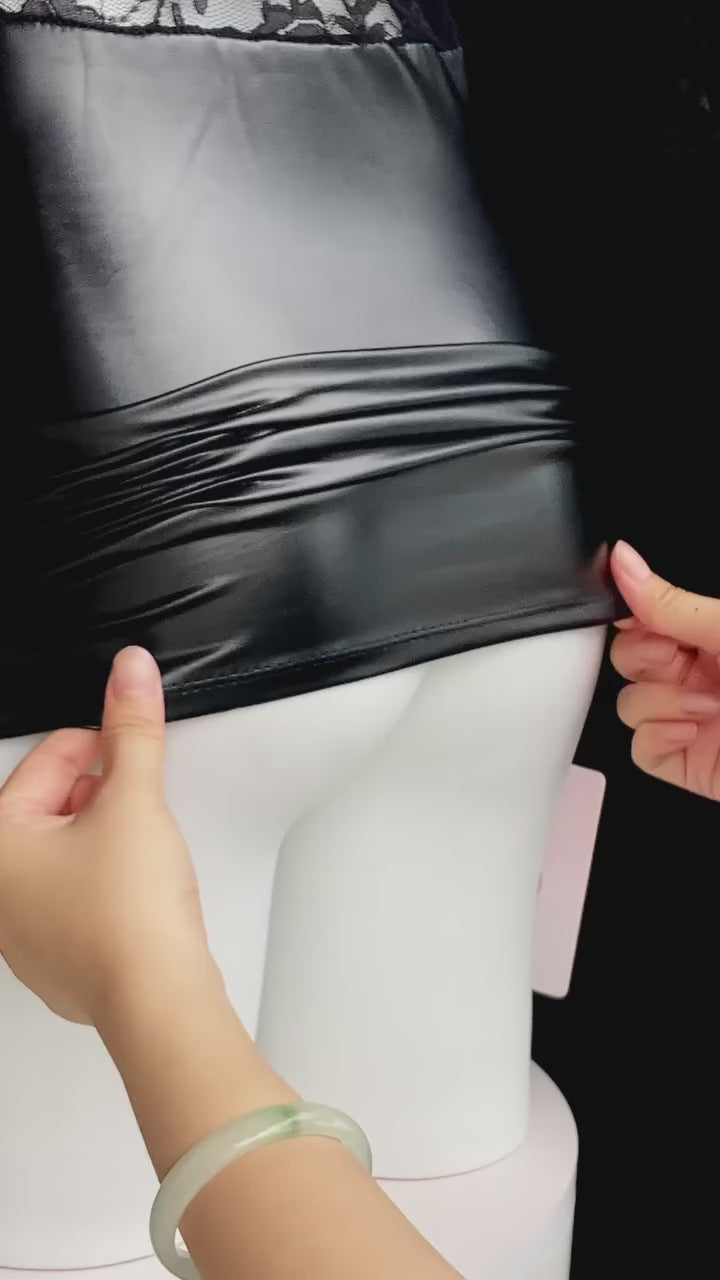 Turn up the heat with our lingerie dress set, designed for confidence and allure. This figure-hugging mini dress features a deep plunging lace neckline that accentuates your curves, paired with a sleek satin bodycon skirt for a luxurious touch.